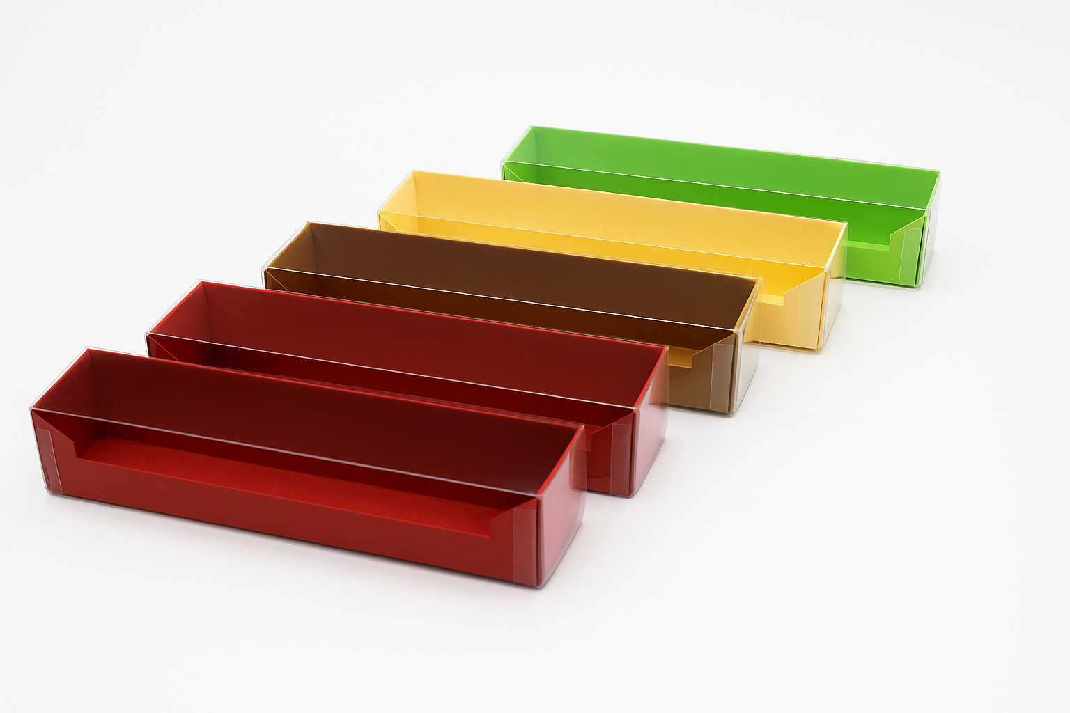 Der Wunsch nach einer Trüffelstange, in welcher man die Pralinen auch dann erkennt, wenn die Trüffelstange auf Augenhöhe steht wurde von uns dankend angenommen. Darauf entstand diese Trüffelstange für 3, 5 oder 8 Pralinen mit einem seitlichen Sichtfenster, welches im 45° Winkel zuläuft. So habt der Käufer die Gelegenheit die Pralinenfüllung nicht nur von oben, sondern auch von der Seite zu sehen.